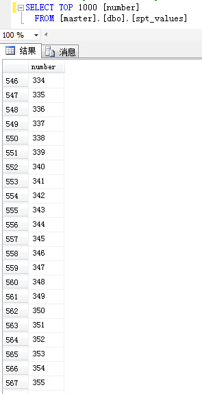 FROM [MASTER].[DBO].[SPT_VALUES]