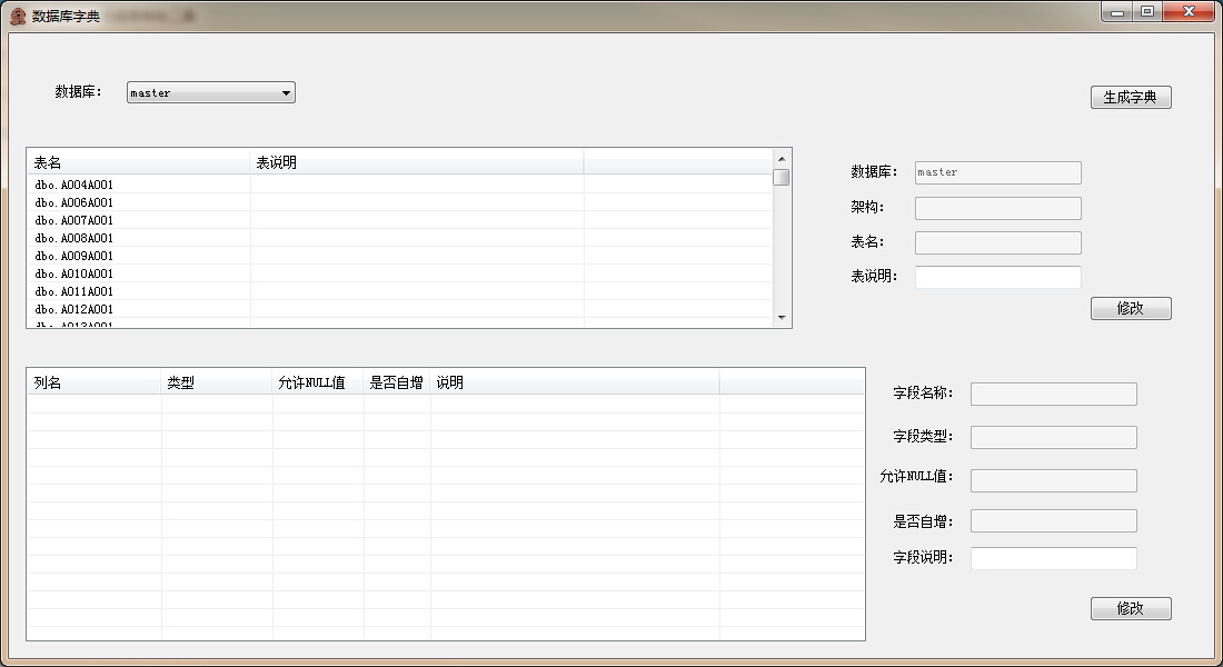 长期以来,一直感觉缺少一款对数据库字典进行维护的软件。近期这种感觉越来越强烈,索性花了点时间,自己做了一款简单的数据库字典维护工具,再这里发布给大家。