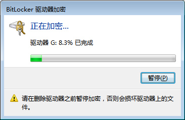之后BitLocker就开始对整个驱动器进行加密,BitLocker对于驱动器的加密解密耗时较长,用户需要等待相当长的时间。