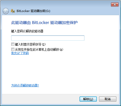 加密完成之后,U盘的磁盘图标上多了一把锁,此时表示U盘已经加密完成。之后如果将U盘取出然后再次插入U盘,会出现输入密码的提示,只有输入正确的密码才能够打开U盘。