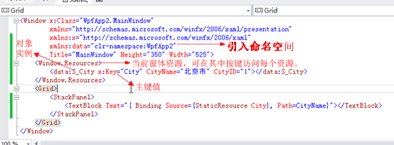 第六、在WPF的xmal文件中还可以添加如下资源。如下图。(纠错:图中S_City是类,并不是对象实例)